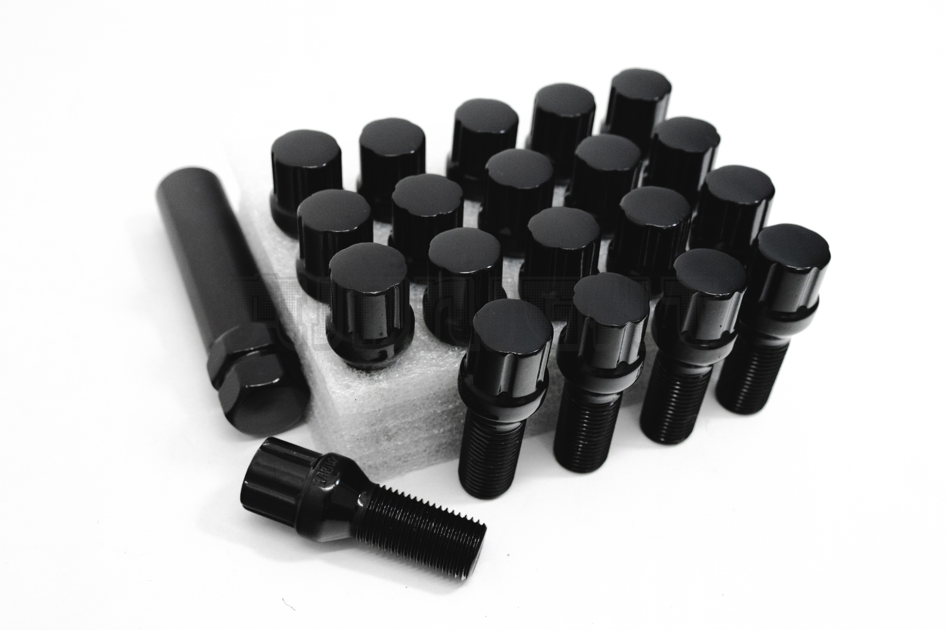 Bolts - 016 20x Black 14x1.5 Spline Tuner Lug Bolts 28mm Shank Volkswagen Aftermarket Wheel
