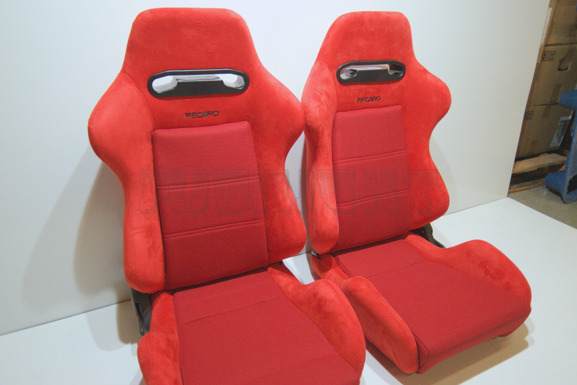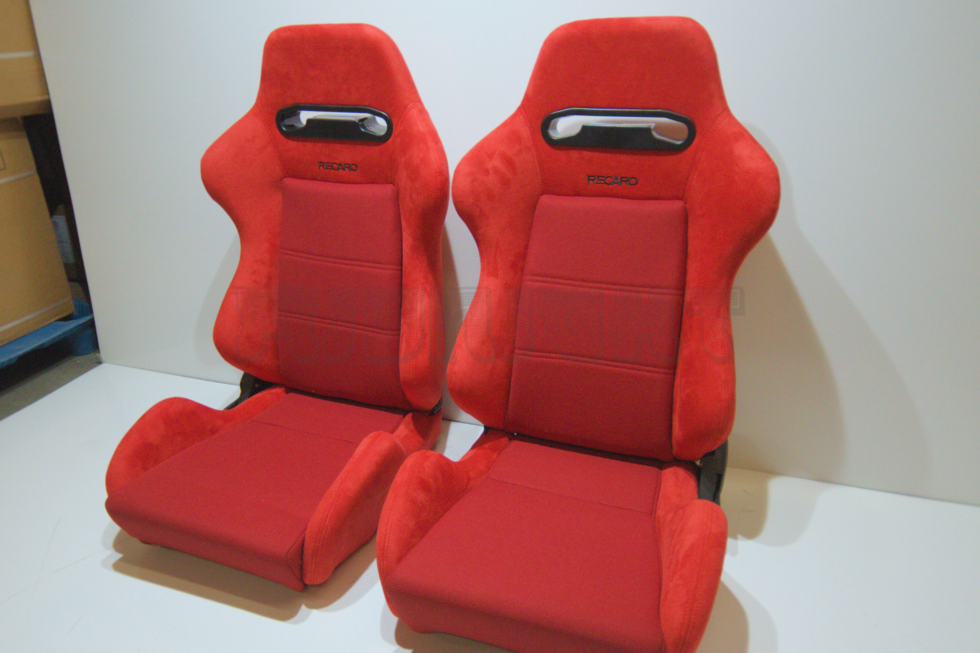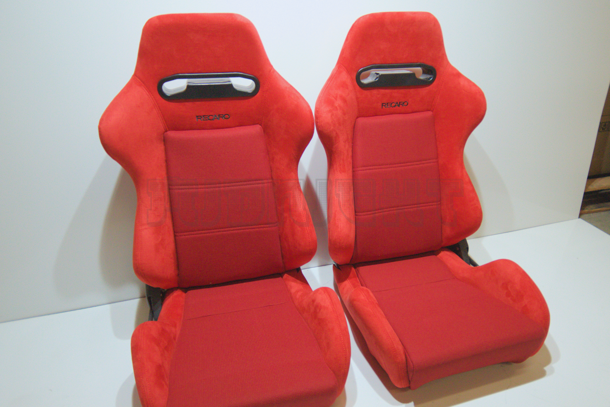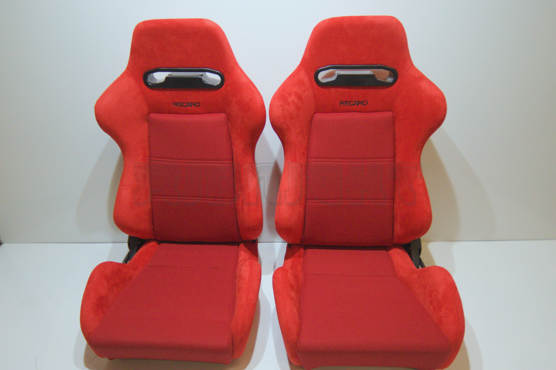 Recaro SR3 Style Red Suede Alcantara Black Embroidery Reclinable Bucket Seat